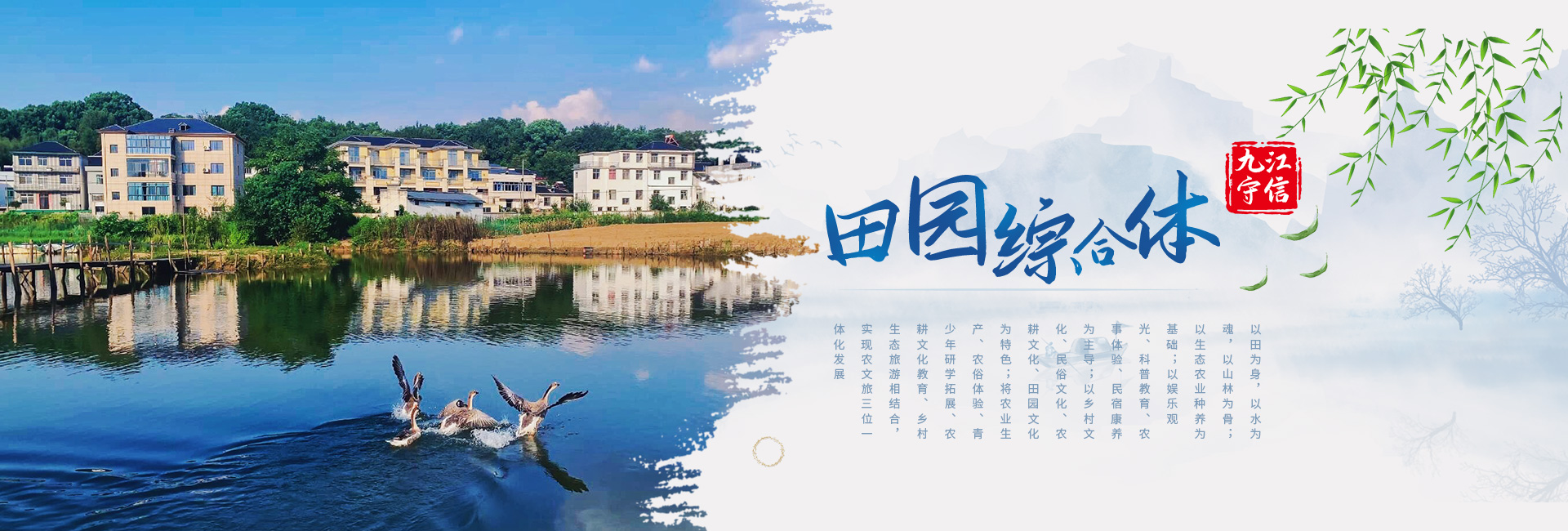 九江守信田園綜合體以田為身,以水為魂,以山林為骨;以生態(tài)農(nóng)業(yè)種養(yǎng)為基礎(chǔ);以?shī)蕵?lè)觀光、科普教育、農(nóng)事體驗(yàn)、民宿康養(yǎng)為主導(dǎo);以鄉(xiāng)村文化、民俗文化、農(nóng)耕文化、田園文化為特色;將農(nóng)業(yè)生產(chǎn)、農(nóng)俗體驗(yàn)、青少年研學(xué)拓展、農(nóng)耕文化教育、鄉(xiāng)村生態(tài)旅游相結(jié)合,實(shí)現(xiàn)農(nóng)文旅三位一體化發(fā)展,成為生態(tài)性、主題性、復(fù)合型農(nóng)莊公園模式。